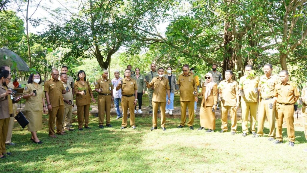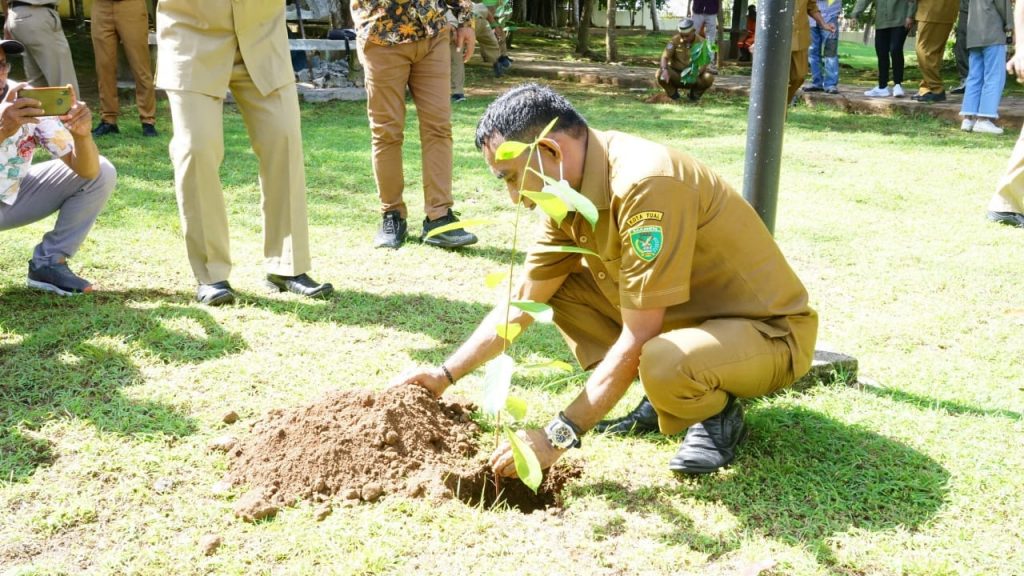 Sekretaris Daerah A. Yani Renuat dan Seluruh pimpinan OPD Lingkup Pemerintah Kota Tual dengan melakukan penanaman sepuluh juta pohon di Lingkungan Kota Tual, Selasa [25/5/2022].